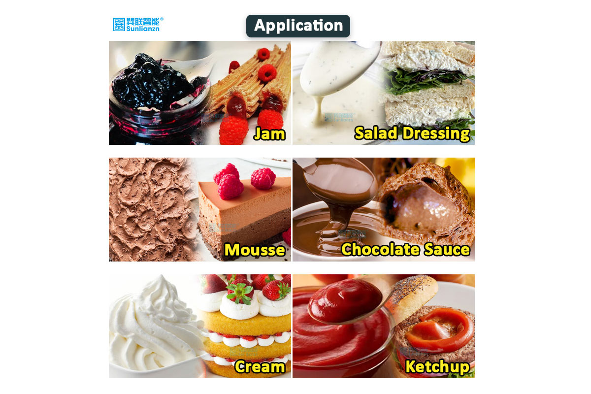 تعبئة المكونات شبه السائلة مثل مكونات الكيك، الكاتشب، صلصة الشوكولاتة، المربى، الكريمة.
