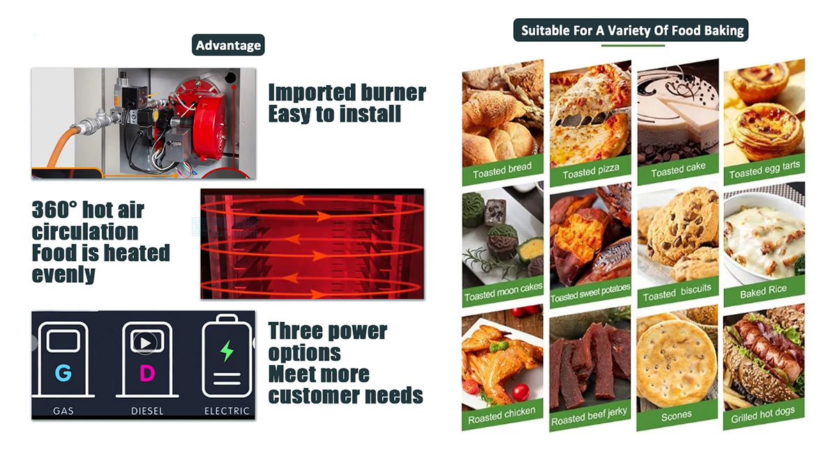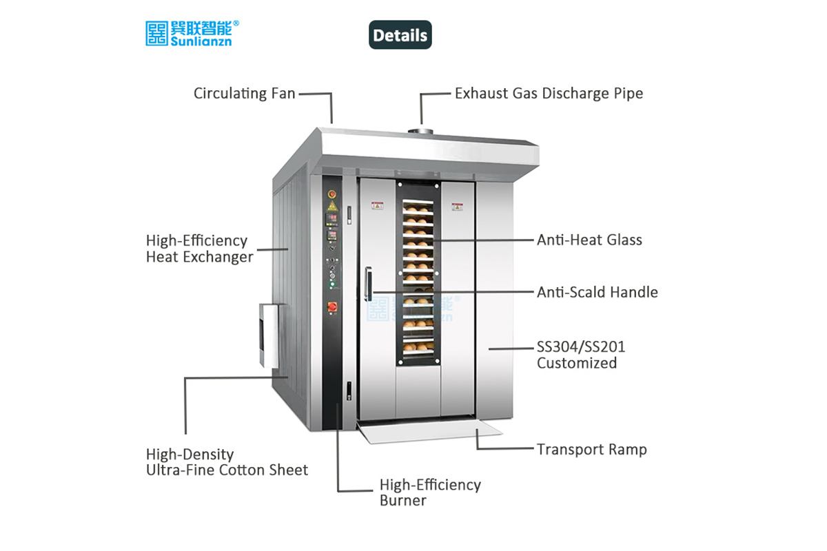 فرن الخبز الدوار هو جهاز خبز تجاري يُحقق تسخينًا متساويًا من خلال تقنية الخبز الدوارة بزاوية 360 درجة، وهو مناسب للمخابز ومصانع الأغذية وغيرها، مما يسمح بخبز كميات كبيرة من الخبز والخبز المحمص والباغيت وغيرها من المنتجات. تكمن ميزته الأساسية في الرف الدوار الذي يُحرك العجين بسرعة ثابتة، بالإضافة إلى تحكم مستقل في درجة الحرارة من الأعلى والأسفل، مما يضمن تناسق لون وملمس المنتج النهائي، ويزيد الكفاءة بأكثر من 20% مقارنةً بأفران السطح التقليدية. يدعم الفرن مصادر حرارة متعددة، بما في ذلك الكهرباء والغاز والديزل، ويوفر مواصفات متنوعة تتراوح من 16 إلى 64 صينية لتلبية احتياجات الطاقة الإنتاجية المختلفة، وهو مصنوع من الفولاذ المقاوم للصدأ، متين وسهل التنظيف.