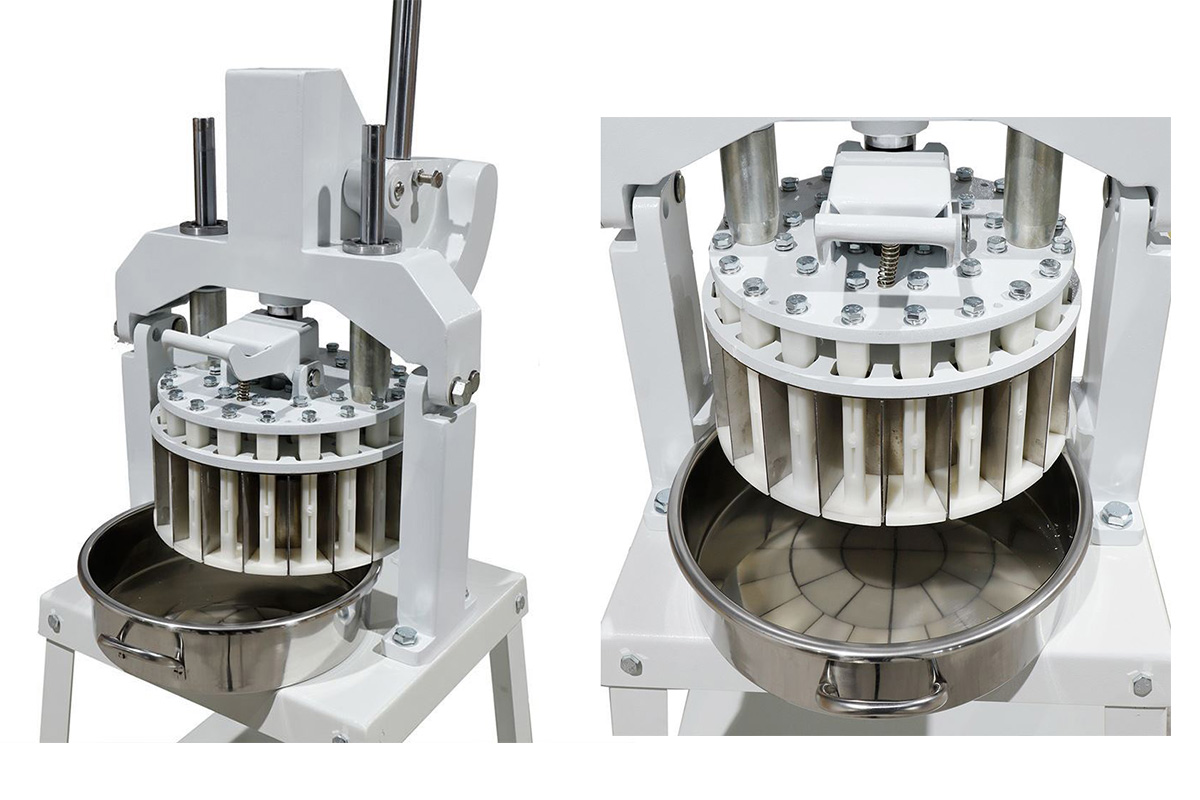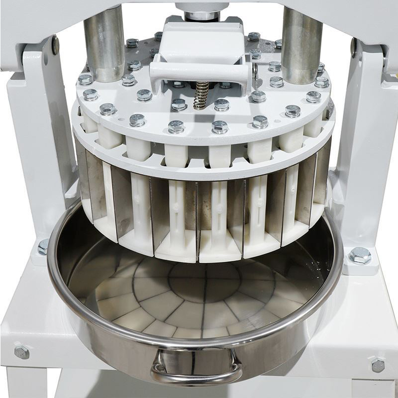 يمكن لآلة التقسيم أن تأخذ كميات كبيرة من العجين مقسمة بالتساوي إلى نفس الكمية من قطع العجين الصغيرة، وتعتمد