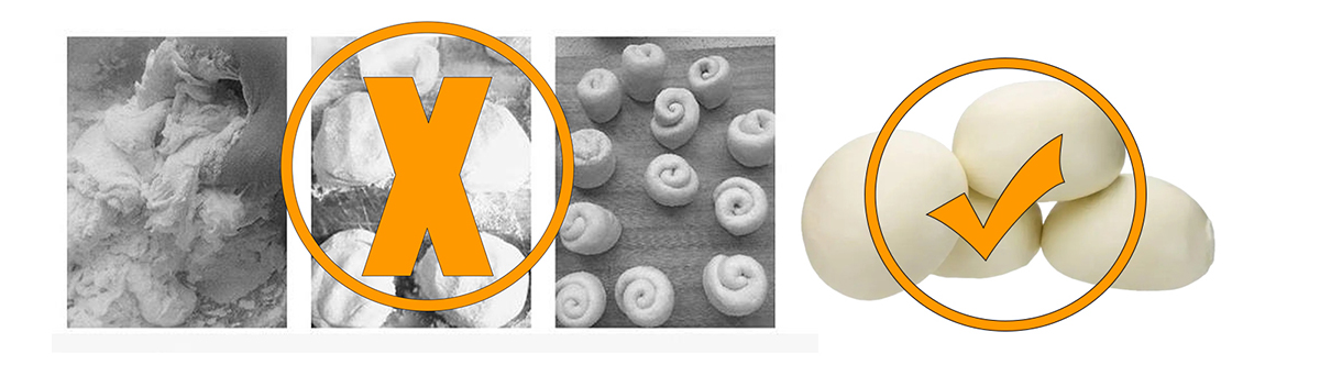 يتم تقسيمها إلى 36 قطعة في المرة الواحدة، يمكن أن يصل وزن كل عجينة إلى 30 جرامًا إلى 160 جرامًا، وقد تتبع الأرقام المحددة نفس الشيء