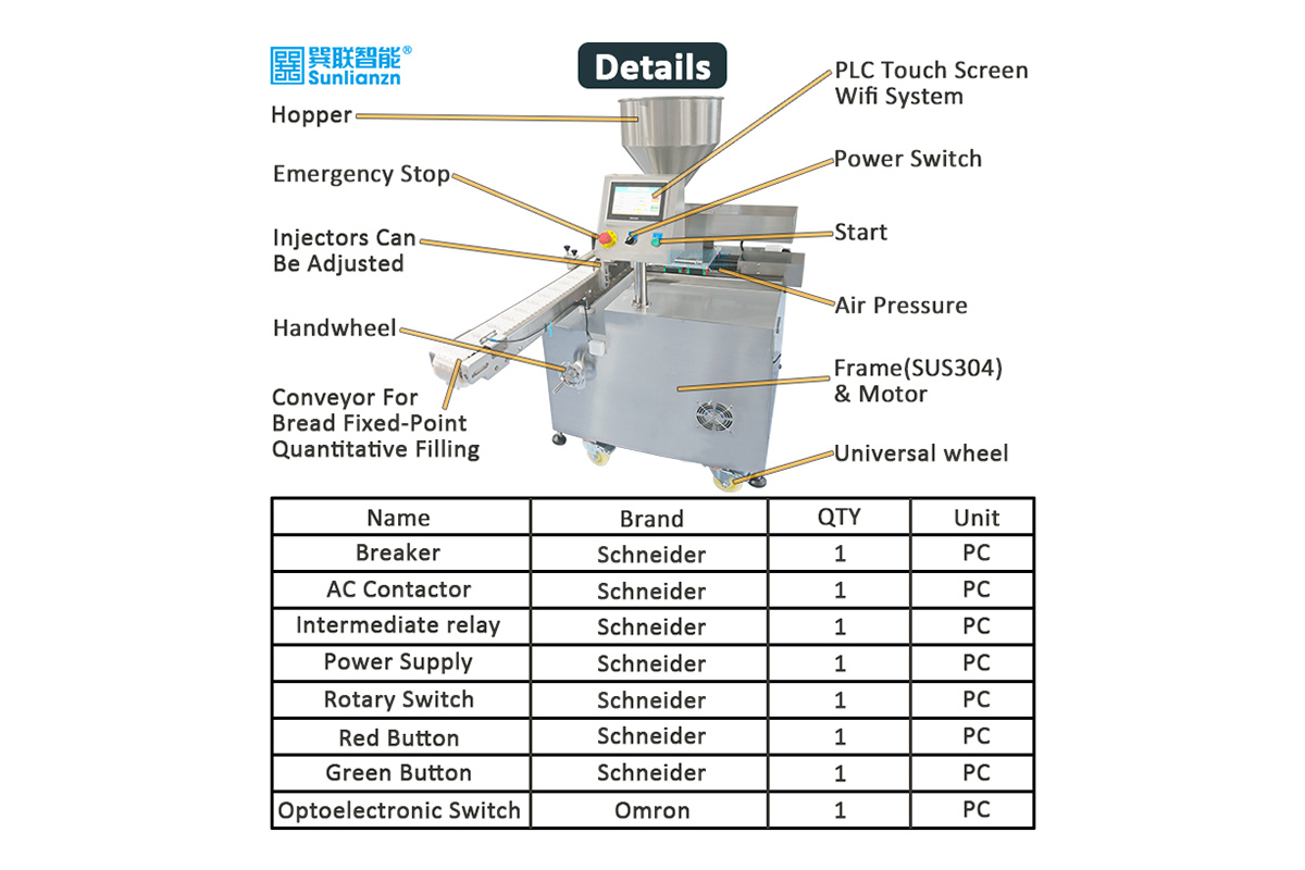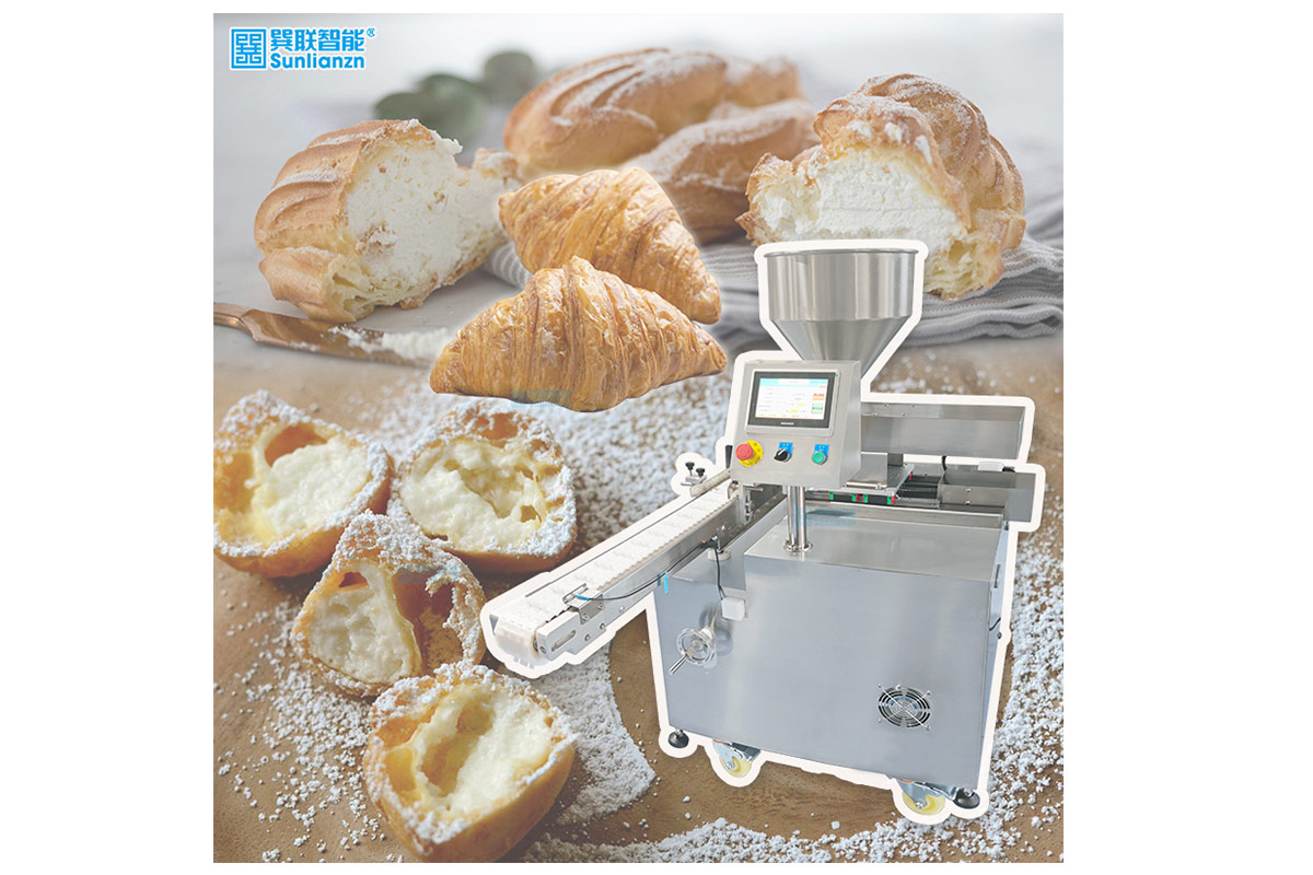 آلة حقن كريمة المربى سهلة الصيانة والتنظيف، دقيقة وسريعة. مناسبة للكيك، والمعجنات، والكرواسون، والخبز، وغيرها من المنتجات التي تتطلب حشوًا جانبيًا.