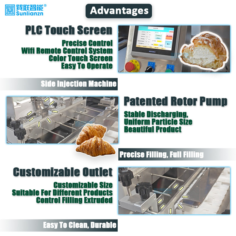 بفضل خبرتها التي تزيد عن 20 عامًا في مجال معدات خبز الكيك والبسكويت، تشمل منتجات Sunlianzn الأساسية ما يلي: آلات حشو الكيك، وآلات كيك ميل كريب دوريان، وآلات حشو الكيك، وآلات حقن الكيك، وآلات تشكيل البسكويت، وآلات تقطيع الكيك بالموجات فوق الصوتية، وما إلى ذلك.