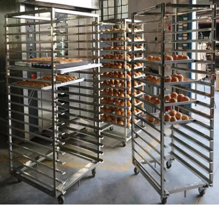 عربة صينية الخبز المصنوعة من الفولاذ المقاوم للصدأ.
