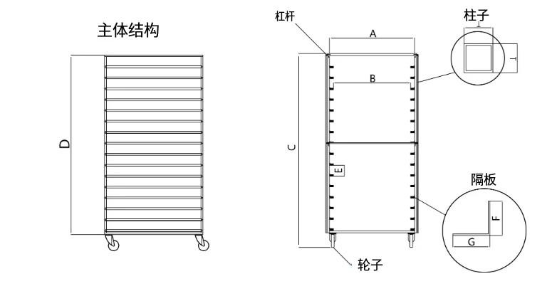 | عربة صينية بسكويت ذات صف واحد | 6 طوابق | 470 × 620 × 1000 | ![]() |