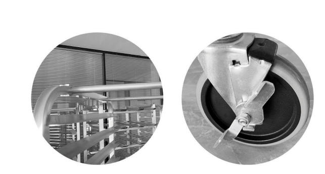عجلات دوارة عالمية 360 درجة مع وظيفة الفرامل، وقدرة قوية على تحمل الأحمال، ومقاومة للتآكل، وهادئة وآمنة.